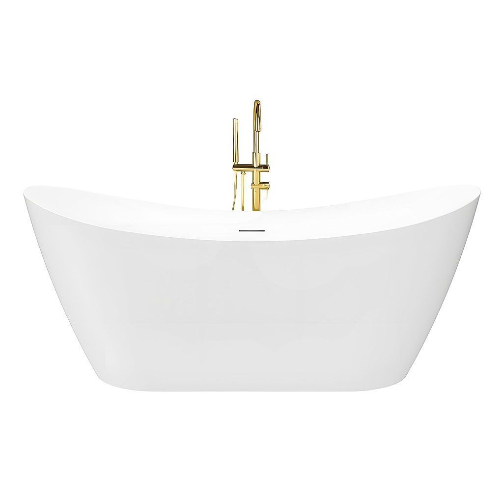Rea Ferrano Slim, volně stojící vana 170x73 cm, bílá, zlatý matný click-clack, KPL-W7330