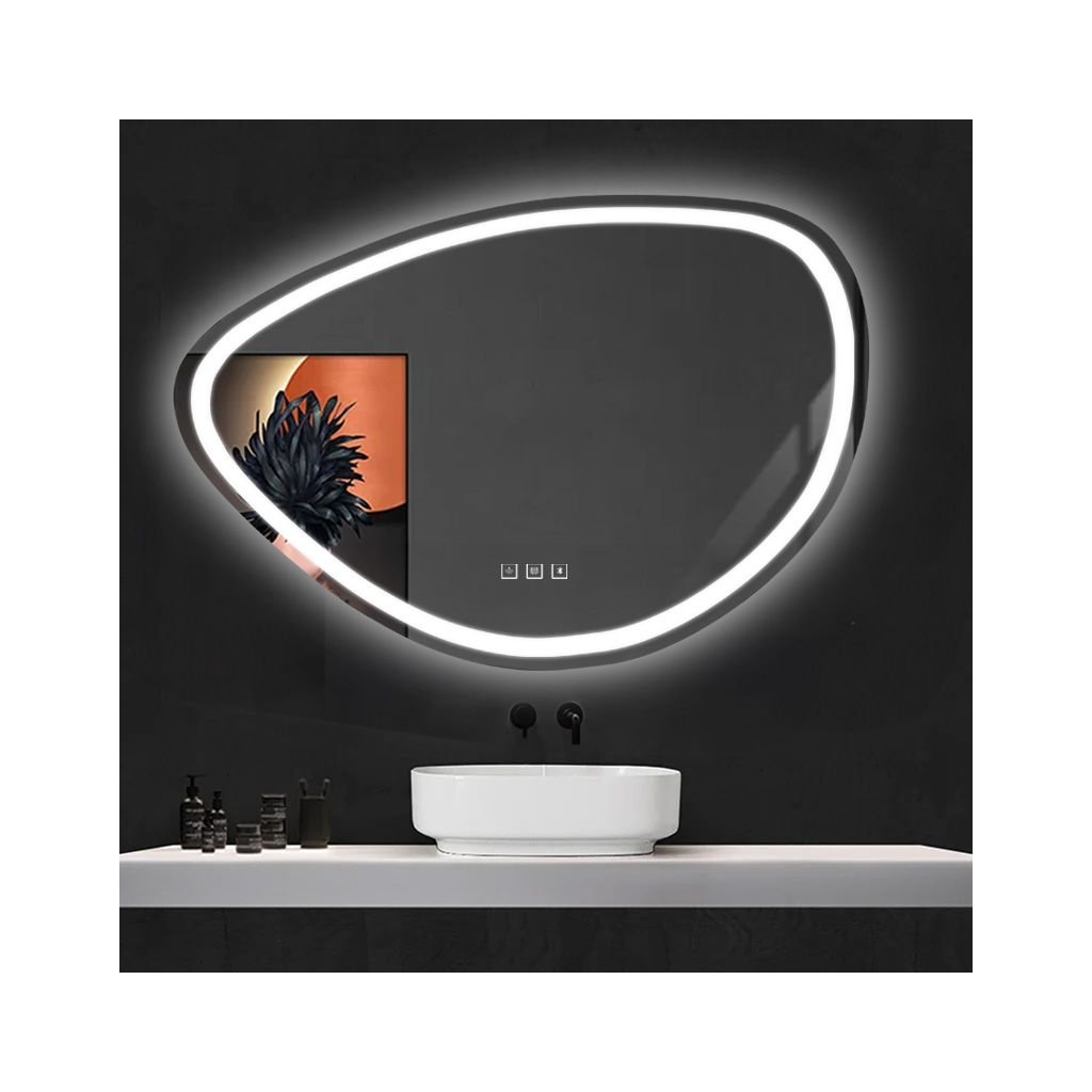 ☀️ Zrcadlo nabízí možnost přizpůsobit atmosféru změnou barvy LED světla, což umožňuje uživateli vybrat si mezi třemi různými barvami světla. Tato funkce se používá intuitivně a vyžaduje pouze krátký stisk dotykového tlačítka na povrchu zrcadla: