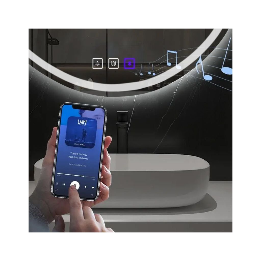 ♫ Zrcadlo s LED osvětlením je ještě funkčnější díky funkci Bluetooth a vestavěným reproduktorům. Díky tomuto jedinečnému připojení si můžete nejen vychutnat brilantní LED osvětlení, ale také streamovat svou oblíbenou hudbu přímo ze smartphonu, tabletu nebo jiného zařízení kompatibilního s Bluetooth.