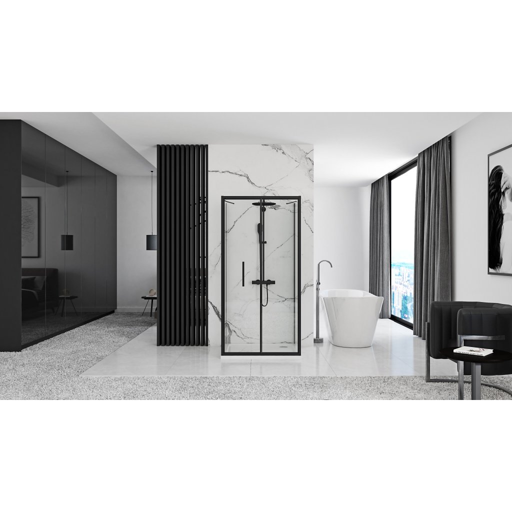 - Tloušťka skla: 4 mm (dveře) / 6 mm (stěna), průhledné tvrzené sklo