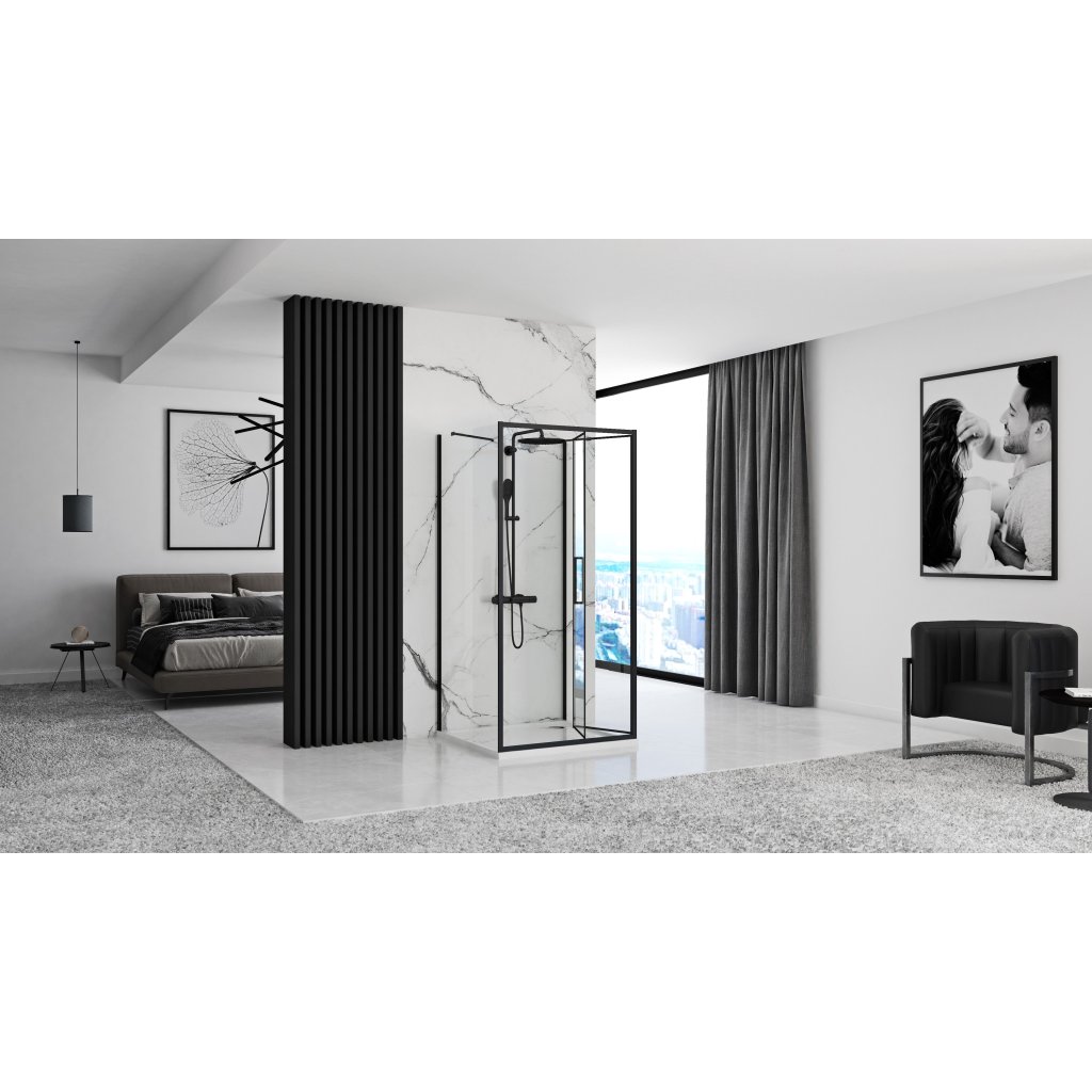 Rea Fold, 3-stěnová sprchová kabina se skládacími dveřmi 90 (dveře) x 100 (stěna) x 195 cm, černý profil, KPL-09915