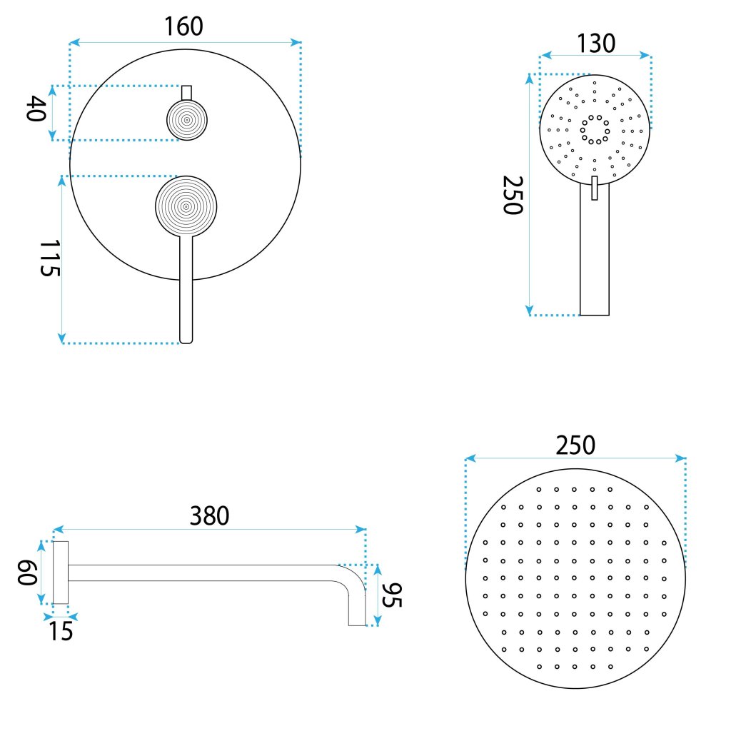 ✅Set: dešťová sprcha + ruční sprchová hlavice + dešťová sprcha + držák ruční sprchy + sprchová hadice