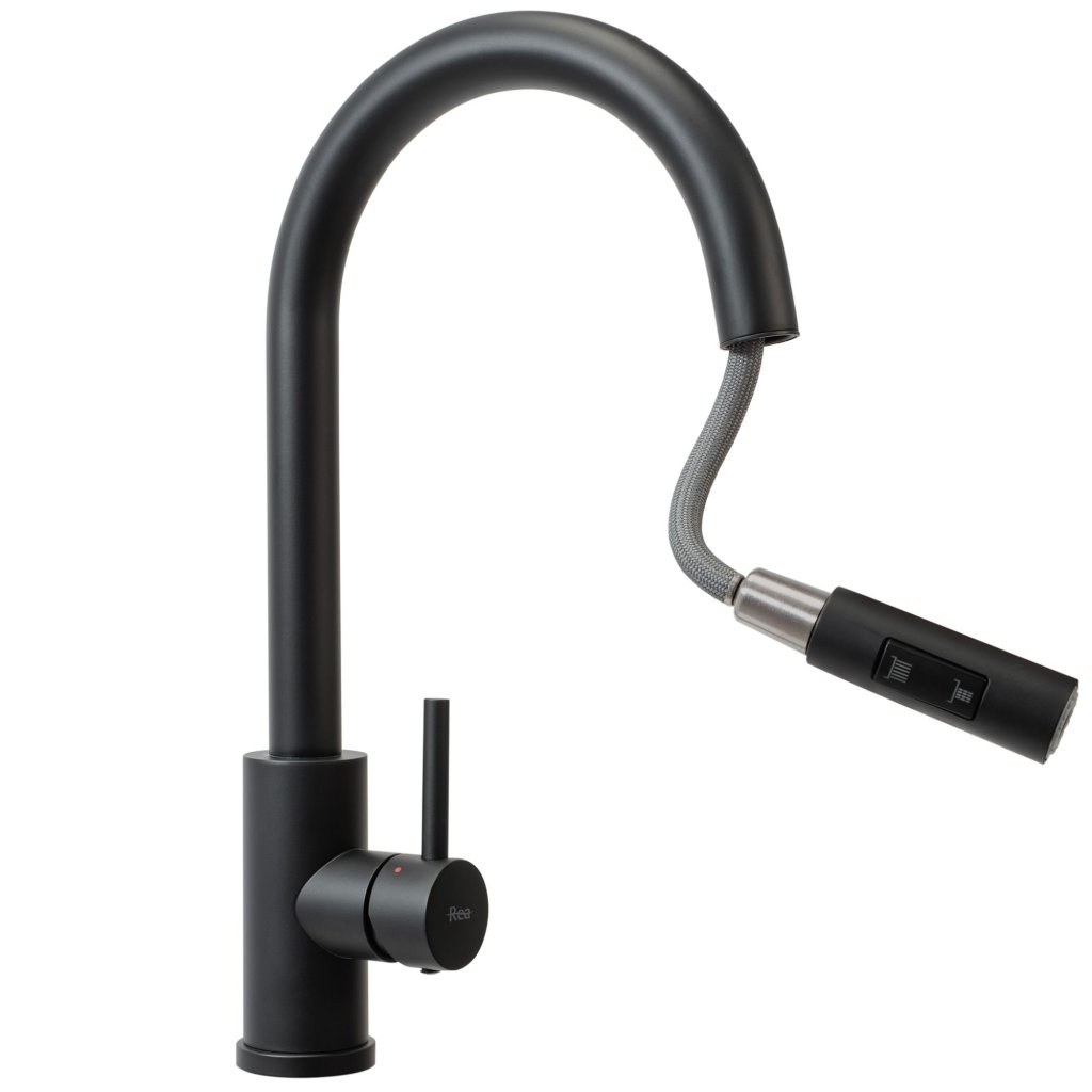 Rea Fresh, dřezová baterie s výsuvnou výlevkou, černá matná, REA-B9147