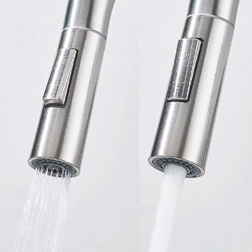 ✔ Výsuvný výtok – naprostá volnost pohybu a pohodlné oplachování celého dřezu