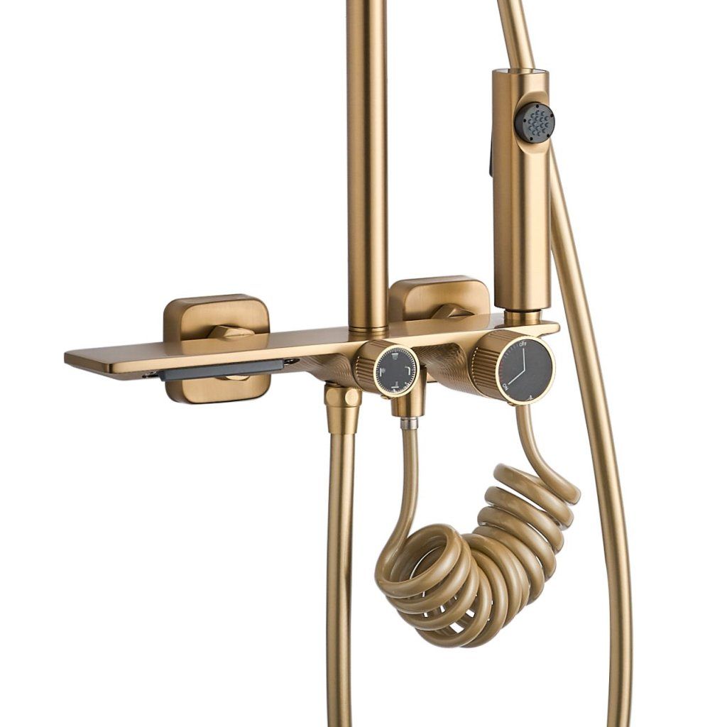 Rea Helix, nástěnný sprchový set s termostatickou baterií a bidetovou sprškou, zlatá matná, REA-P6621