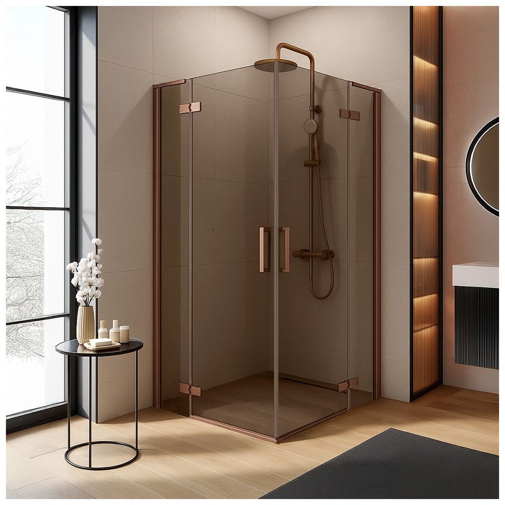 Rea Hugo Double, 2-křídlový sprchový kout 90 (dveře) x 80 (dveře) x 200 cm, 6mm šedé sklo, měděný profil, KPL-K6972