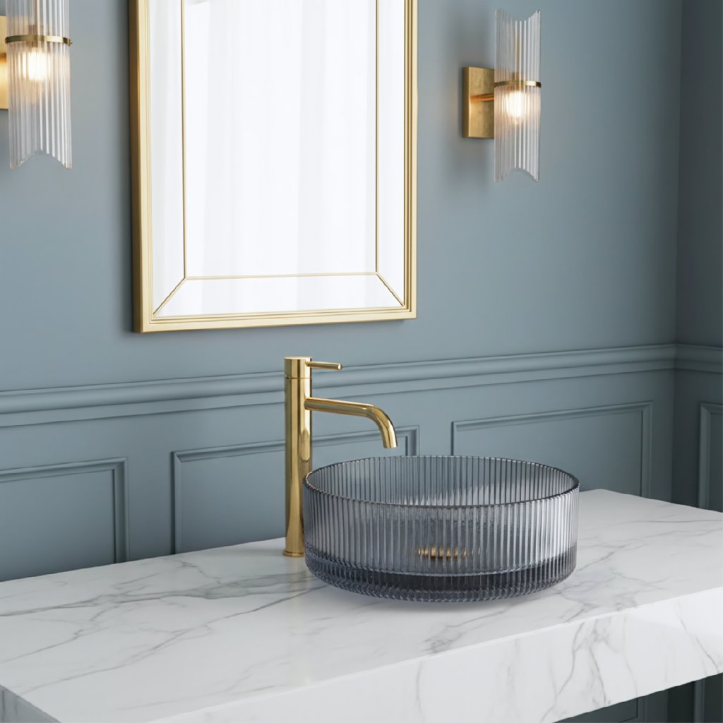 Rea Ingrid, skleněné umyvadlo na desku 40x40x13 cm, šedá, REA-U0279