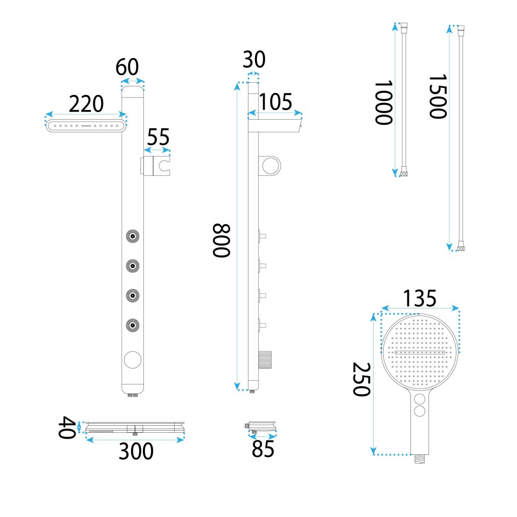 Moderní sprchovou soupravu Karl s termostatem, která spojuje funkčnost s elegantním designem. Je vybavena vířivými tryskami podél těla a panelem vyzařujícím široký proud vody poskytuje bezkonkurenční relaxaci a pohodlí na nejvyšší úrovni. Ideální řešení pro ty, kteří hledají chvíli relaxace po intenzivním dni.