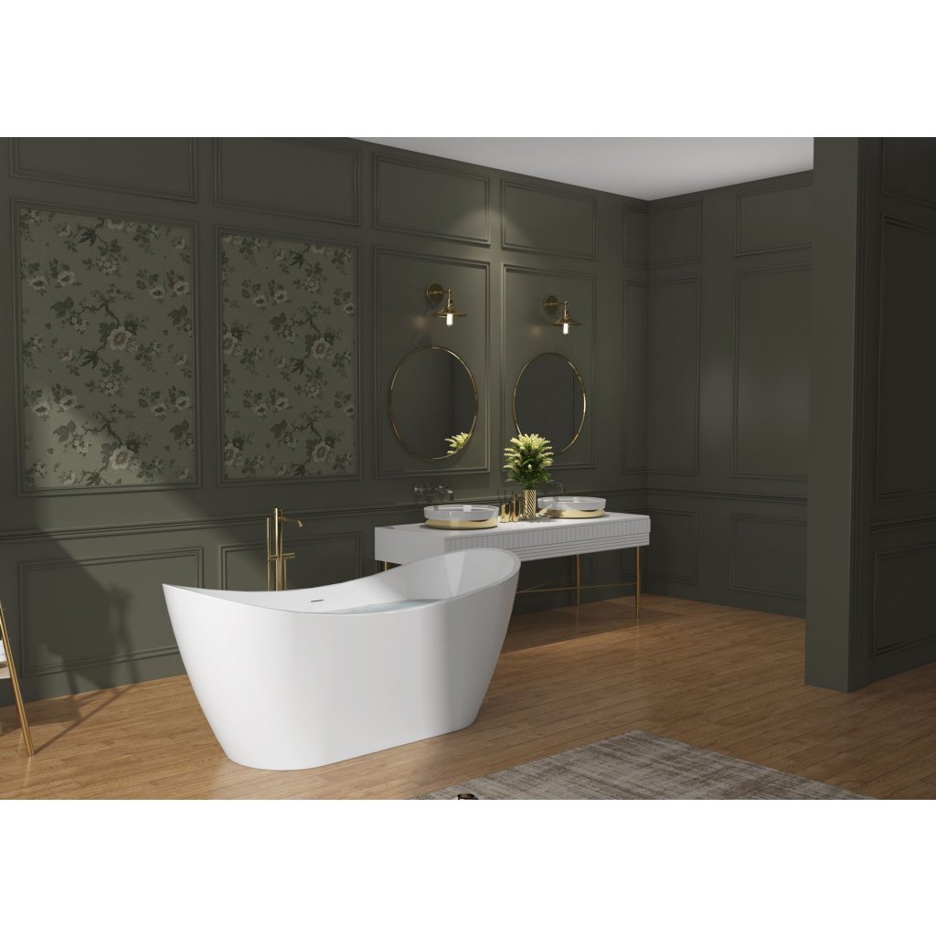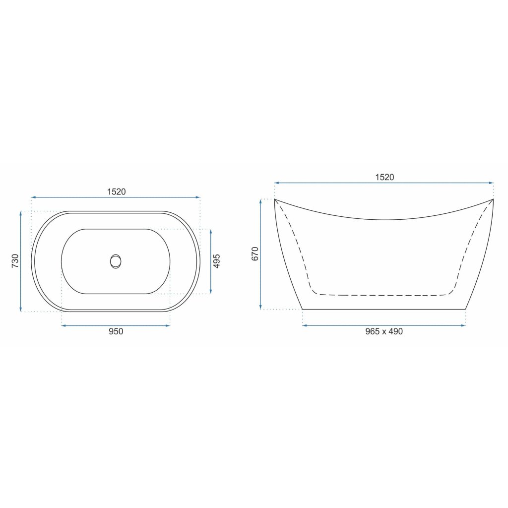 Rea Kerrano, volně stojící vana 152x73 cm se sifonem a zátkou click-clack, bílá, REA-W2002