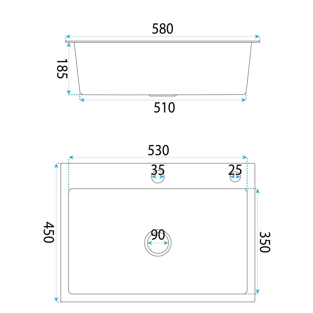 - Typ dřezu: pro zapuštění do pracovní desky shora