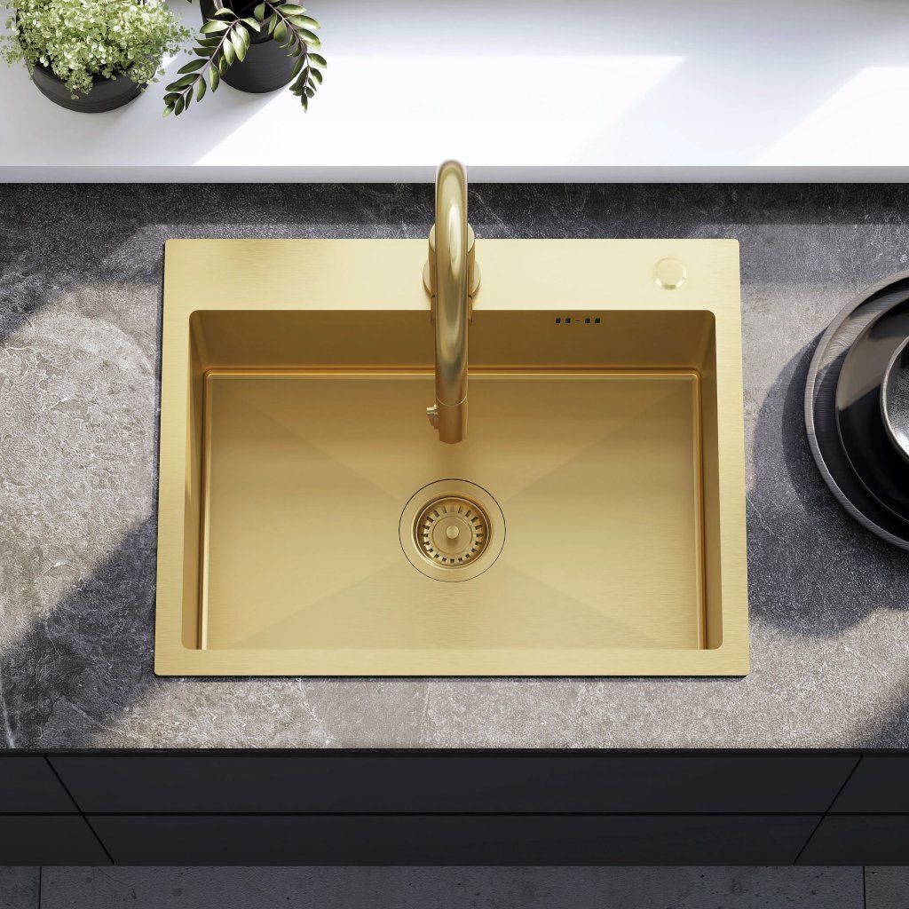 Rea Liam, ocelový kuchyňský dřez 530x450x200mm + sifon, zlatá matná, ZLE-06007