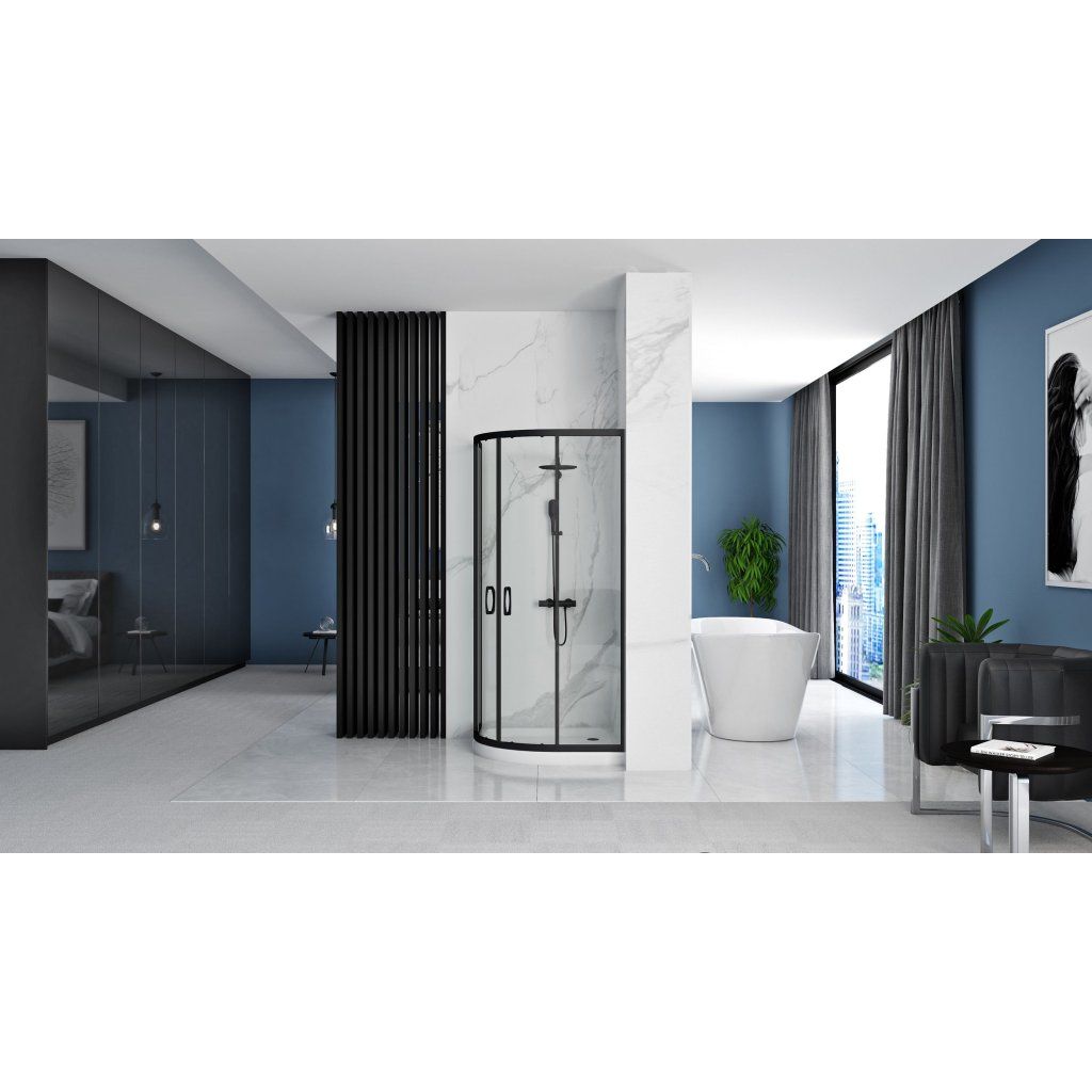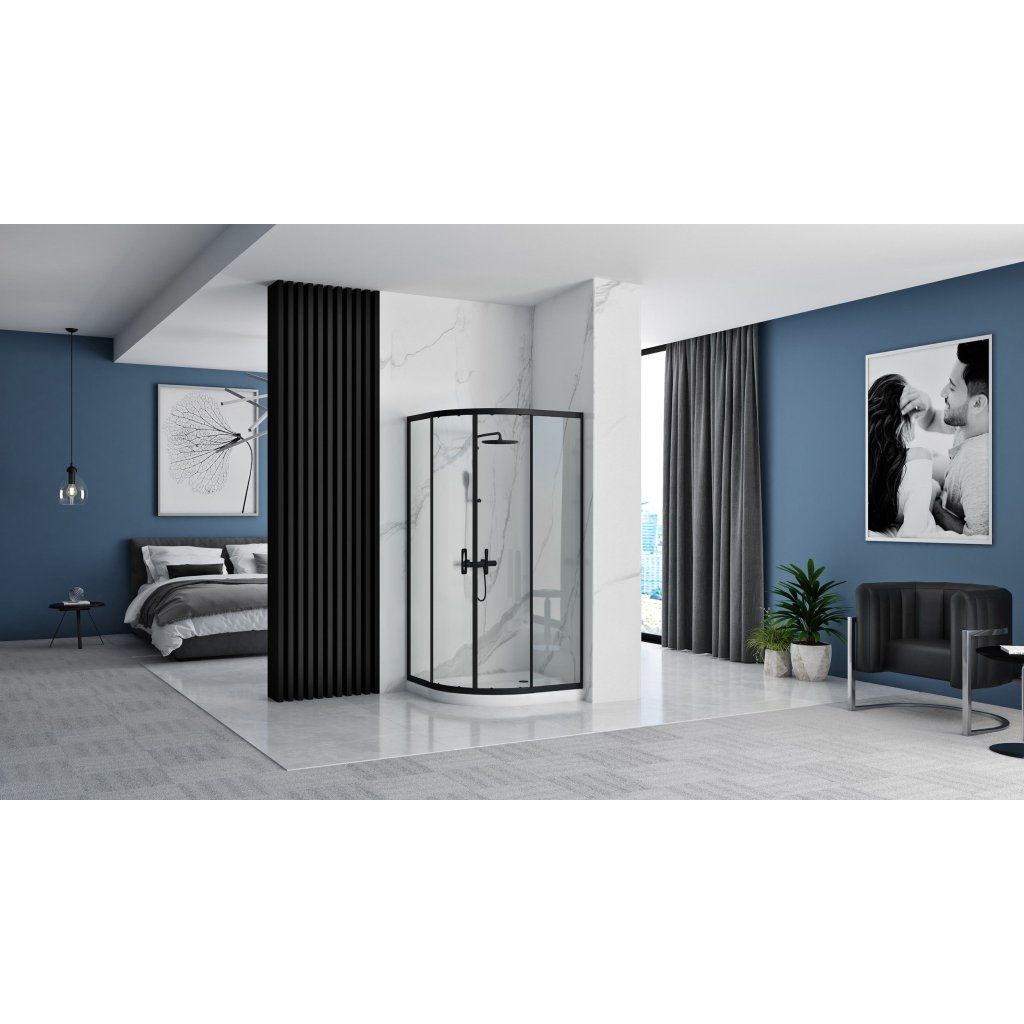 Rea Look, čtvrtkruhová sprchová kabina 80x80x190 cm, 5mm čiré sklo, černý profil, REA-K7902