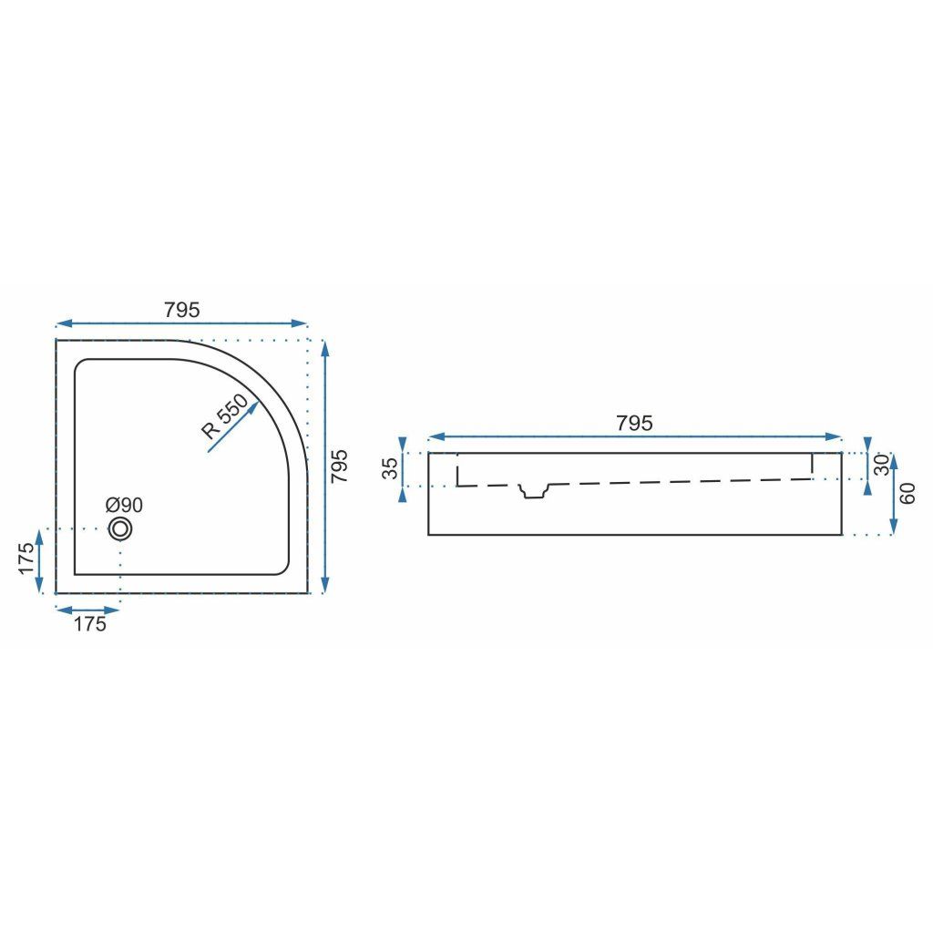 - Typ kabiny: 1/4 kruhový sprchový kout s posuvnými dveřmi