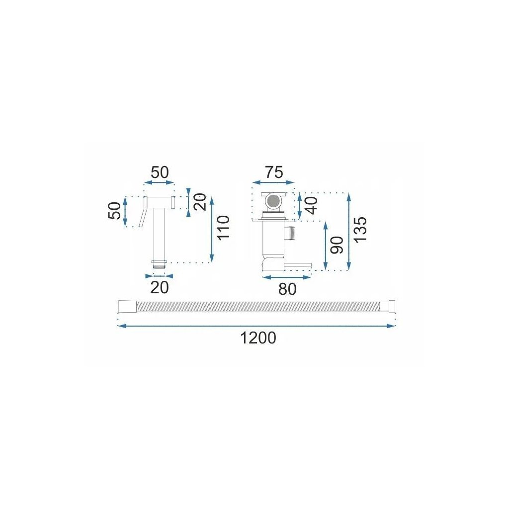 - Připojovací hadice, upevňovací šrouby, těsnění, sprchová hadice 1200 mm
