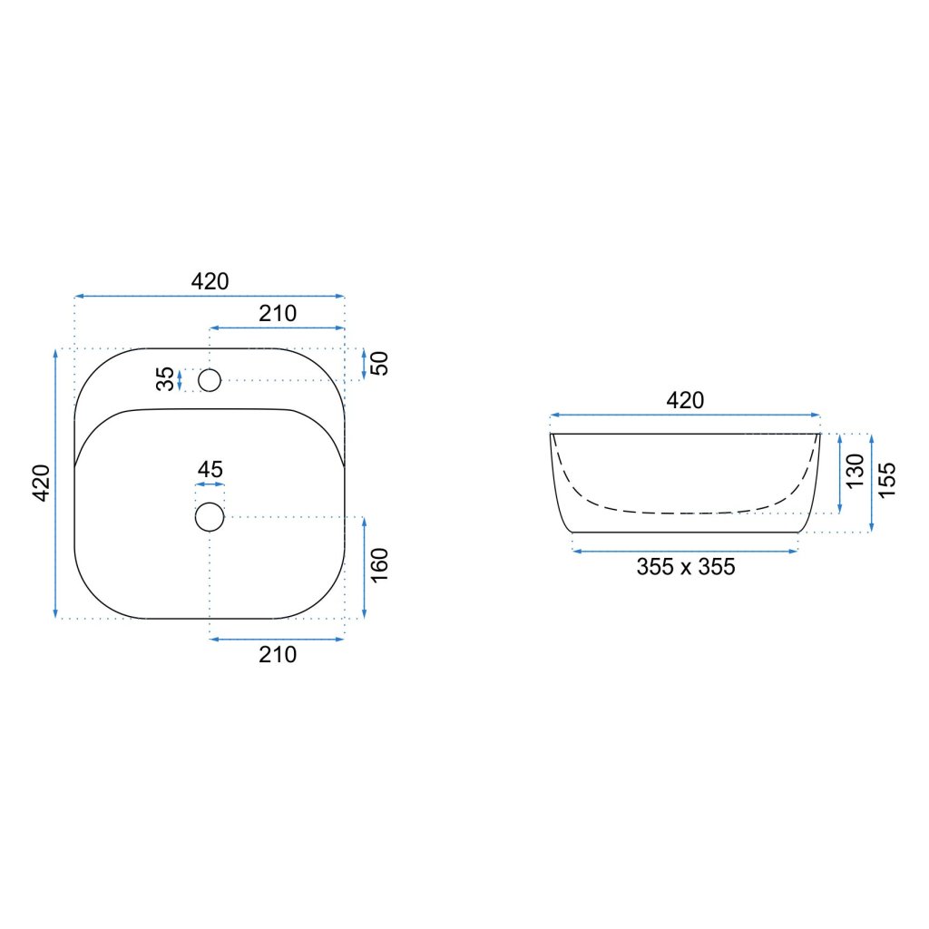 - Druh umyvadla: bez přepadu