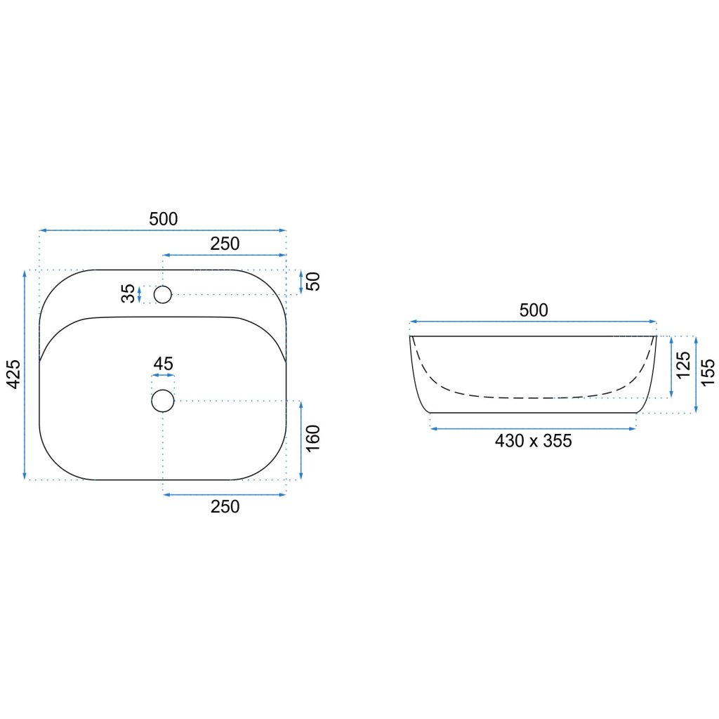 - Druh umyvadla: bez přepadu