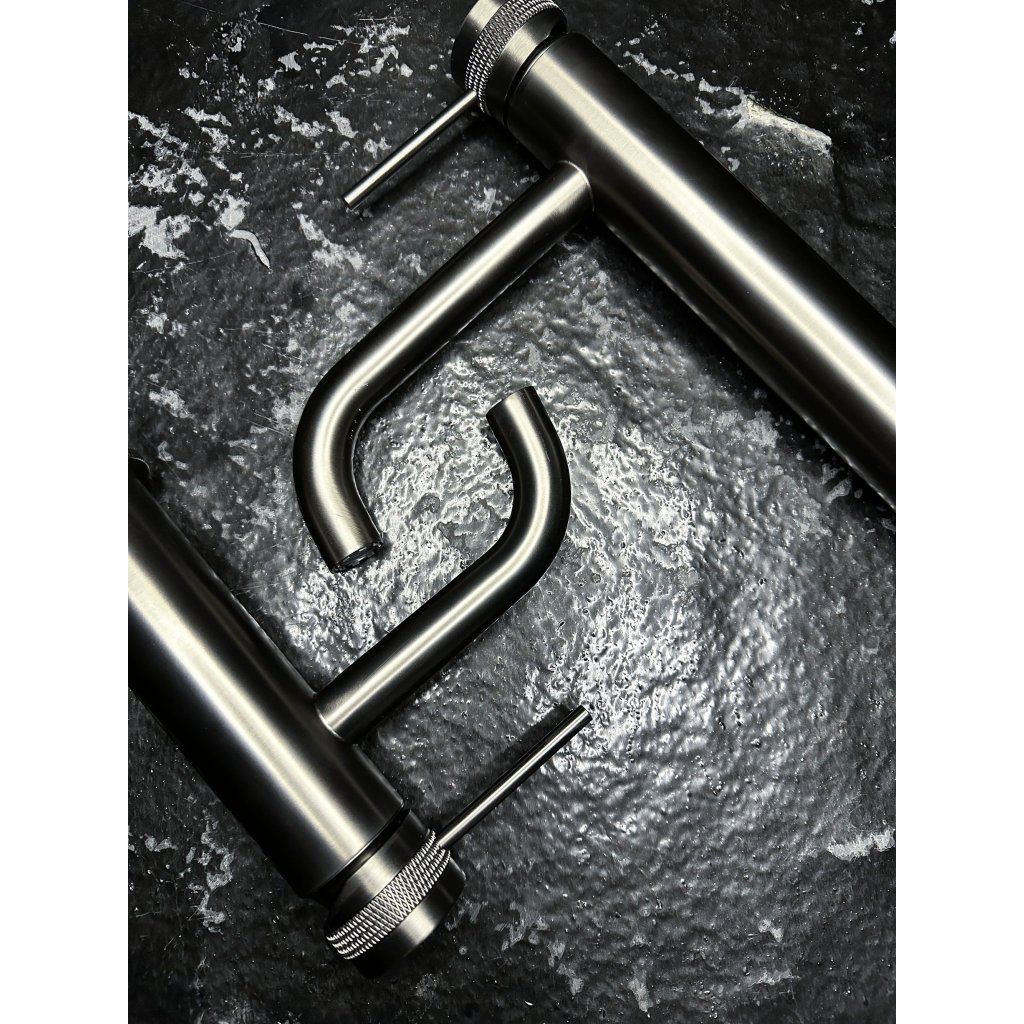 ➡️ Koupelnová baterie Lungo Grip je jedinečnou volbou pro lidi, kteří oceňují moderní design a odolnost. Jeho štíhlý, elegantní tvar a vysoký design se dokonale hodí k umyvadlům na desku a jeho minimalistická estetika z něj činí dokonalou volbu pro industriální a modernistické koupelny.