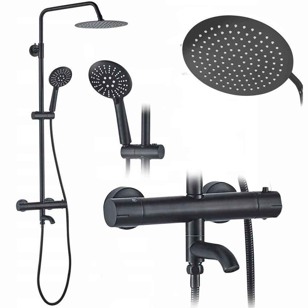 - Sada obsahuje : Termostatická baterie s výtokem, sprchovou hadici s ruční sprchou, nerezovou dešťovou sprchovou hlavici