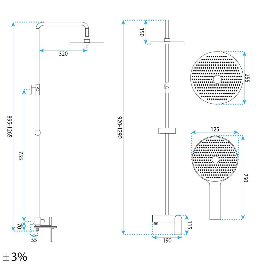 - Rozměry dešťové sprchy: 25,5 x 25,5 cm