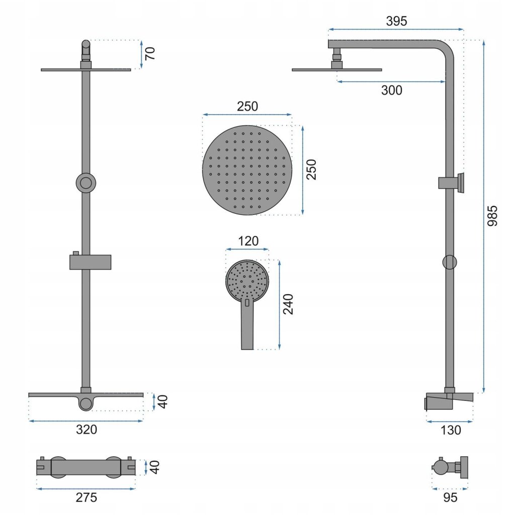 - Dešťová sprchová hlavice (horní): ABS černá, průměr 250 mm