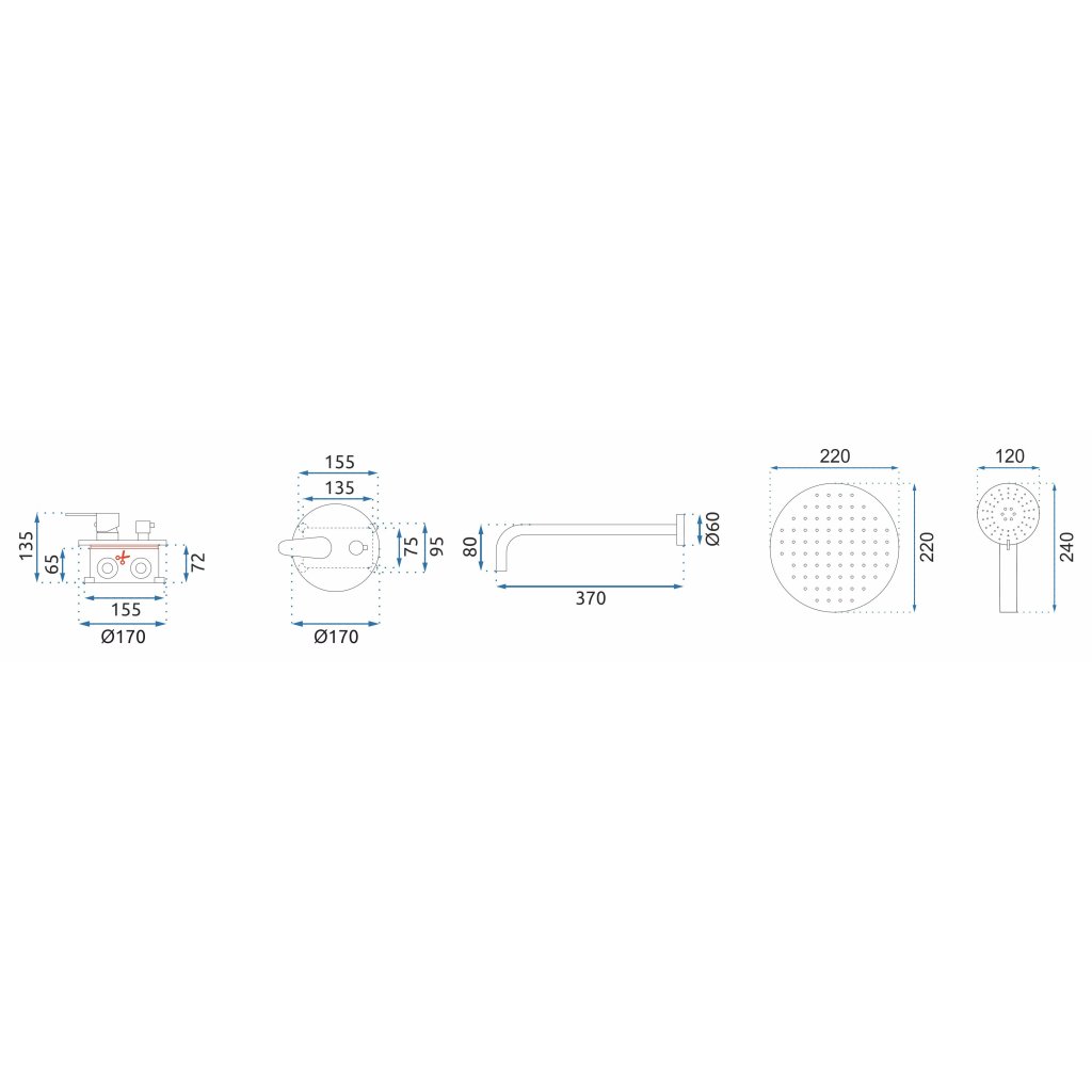 - Typ: Podomítková sprchová sada s ruční a dešťovou hlavicí