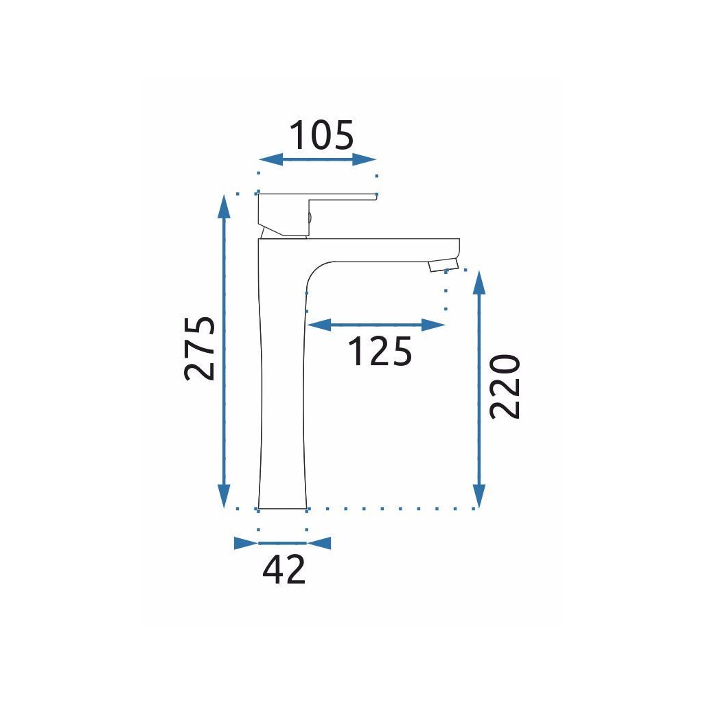 - Dosah výtoku: 125 mm