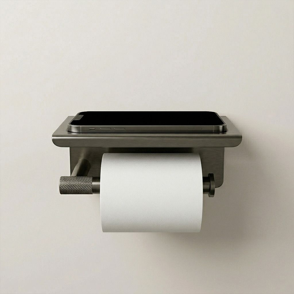 Plochá polička integrovaná do vrchní části držáku poskytuje odkládací prostor přímo tam, kde jej potřebujete. Telefon, vlhčené utěrky, malý deodorant nebo svíčka – polička pojme vše, co u toalety hledáte v poslední chvíli.