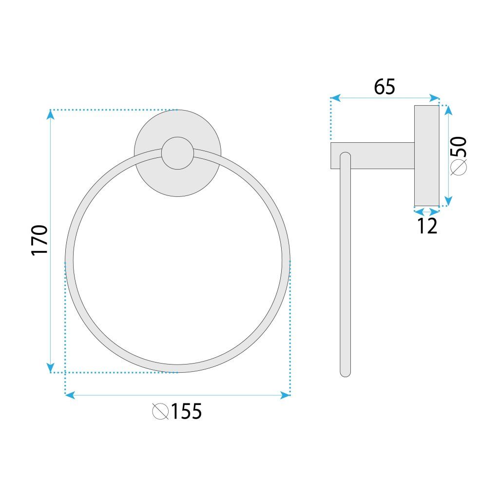 Forma prstence o rozměrech 155×180 mm je navržena tak, aby ručník na ruce mohl volně viset po celém obvodu – vzduch cirkuluje ze všech stran a ručník rychle vysychá. Esteticky působí zavěšený ručník na kruhovém věšáku mnohem čistěji než na klasické tyčce.