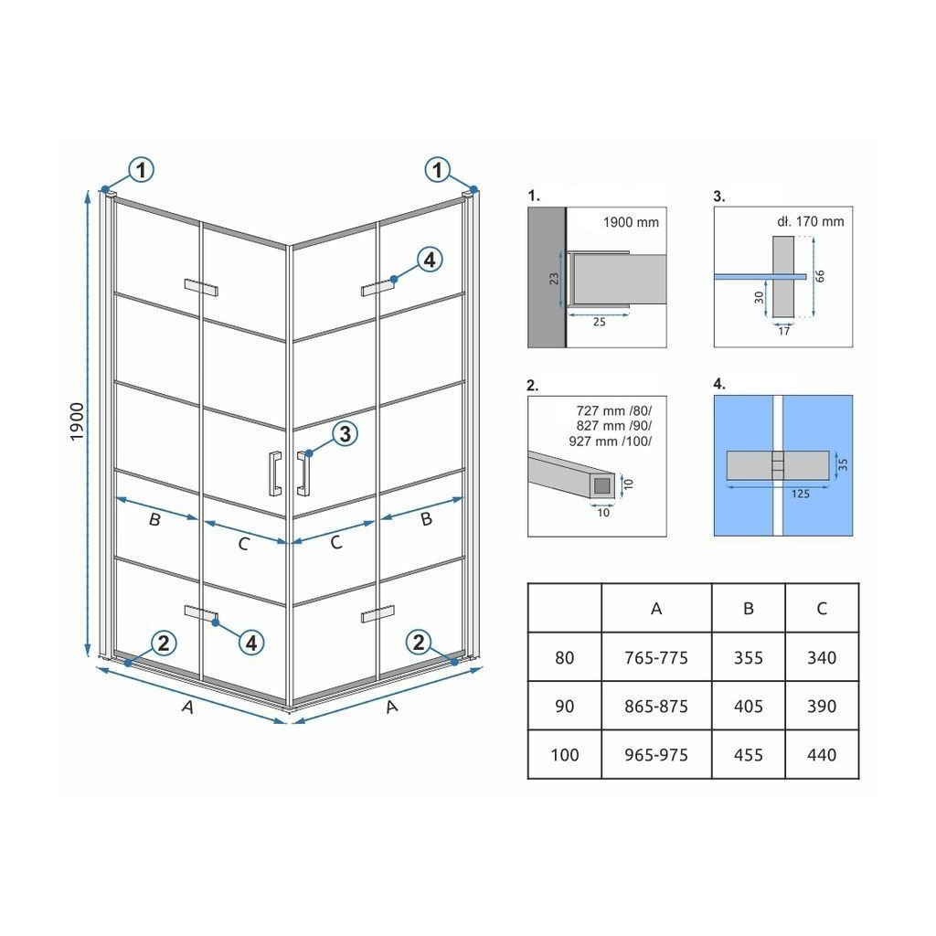 - Rozměry: 90 (dveře) x 90 (dveře) x 190cm