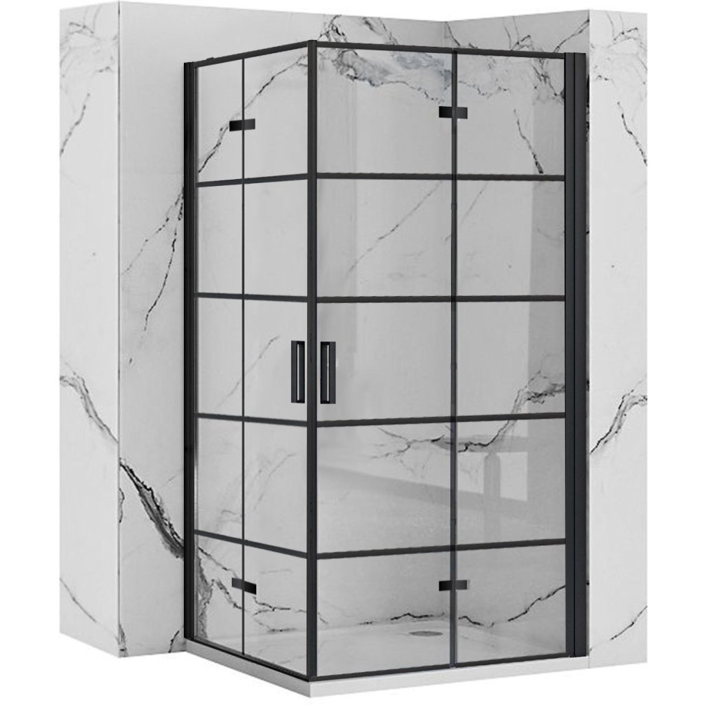 Rea Molier Black Double, sprchový kout se skládacími dveřmi 90(dveře) x 90(dveře), 6mm čiré sklo, černý profil, KPL-22012