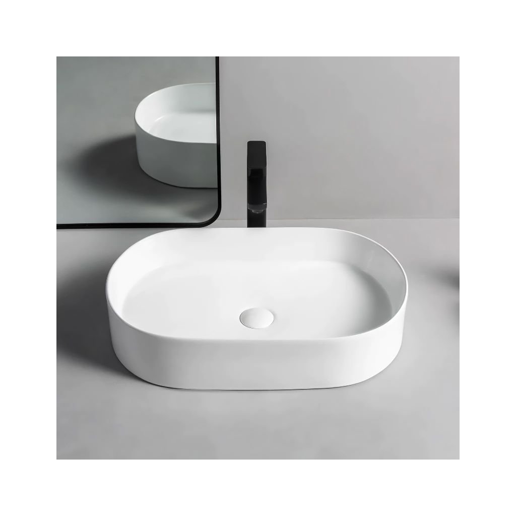 Rea Nadia, keramické umyvadlo na desku 61x38 cm, bílá lesklá, REA-U1055