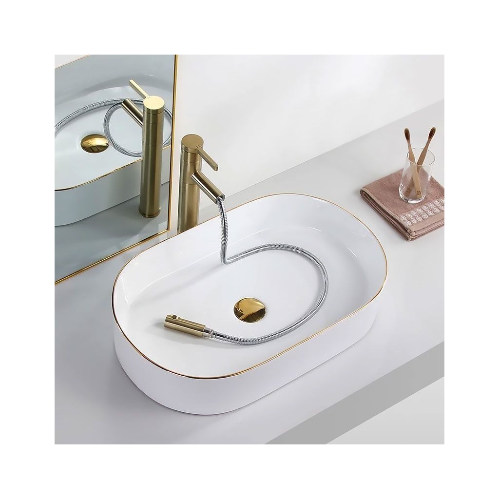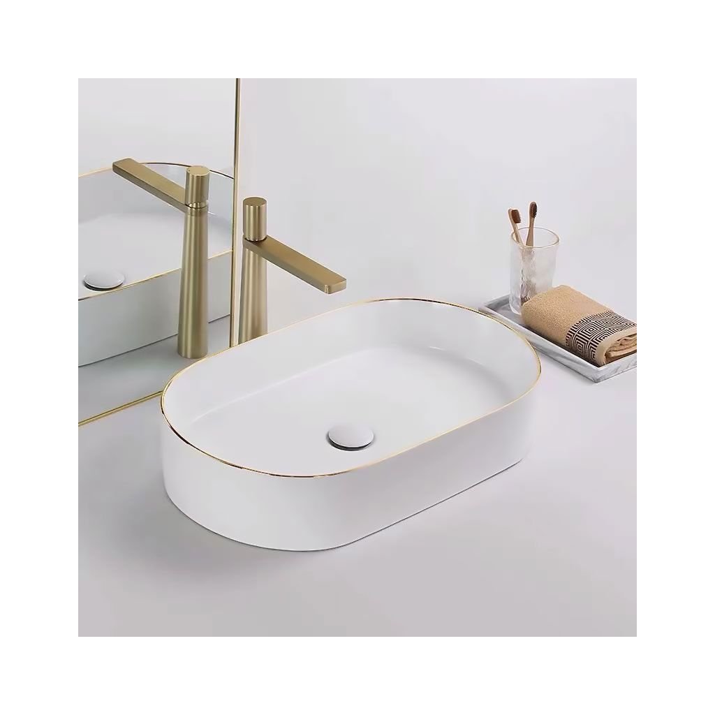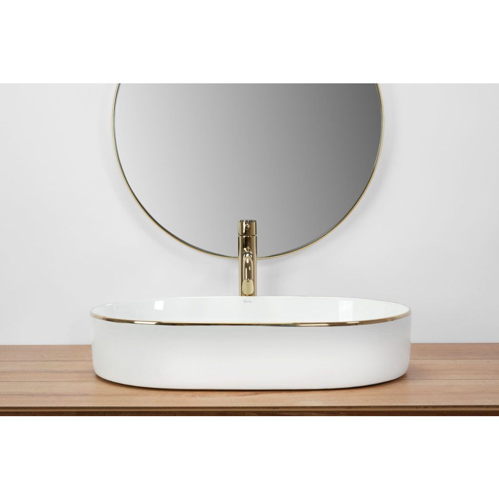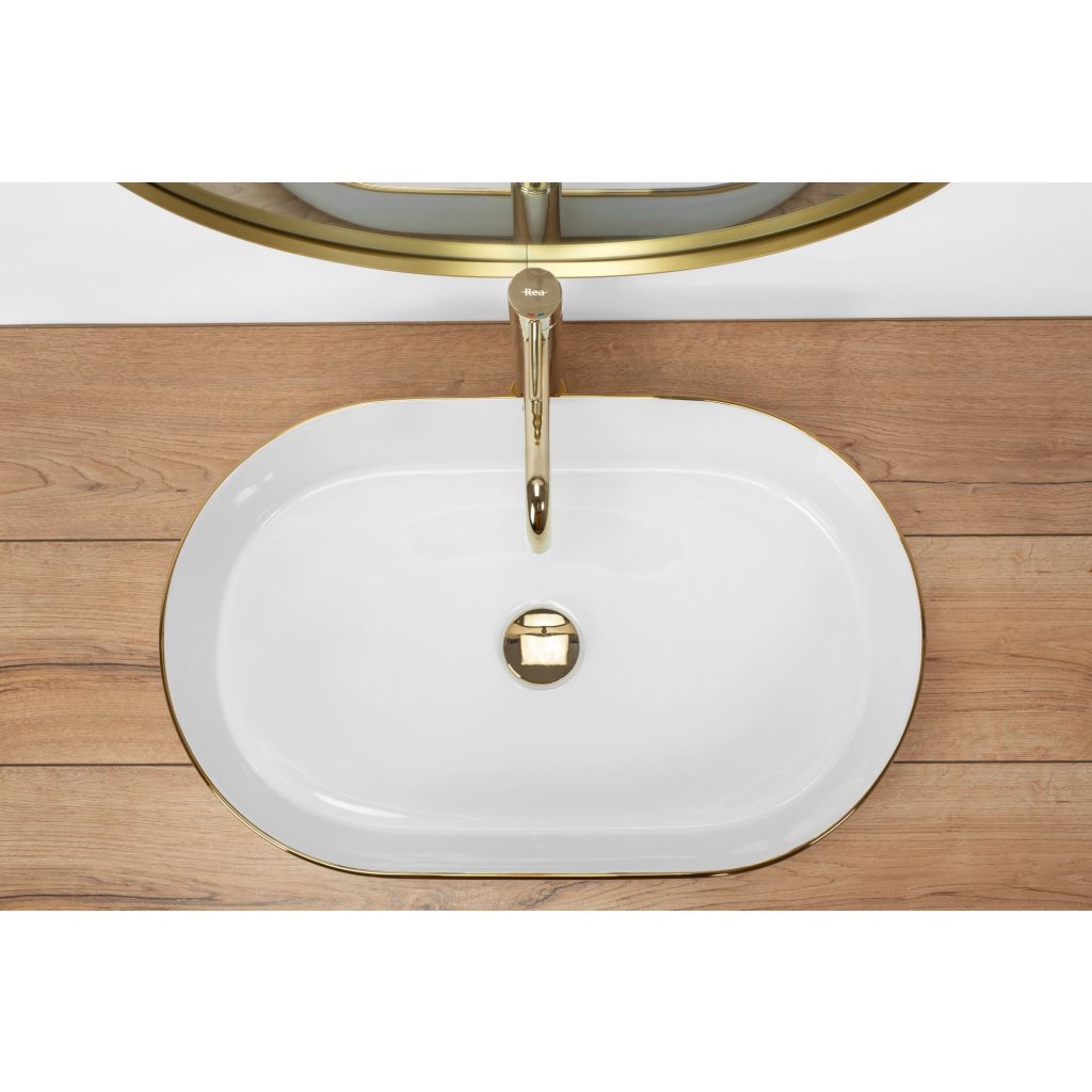 Rea Nadia, keramické umyvadlo na desku 61x38 cm, bílá-zlatý okraj, REA-U1063