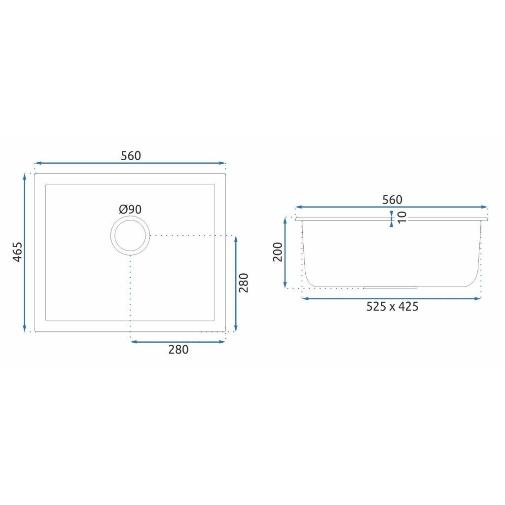Rea Nels, 1-komorový granitový dřez 560x465x200 mm, černá skvrnitá, ZLE-00114