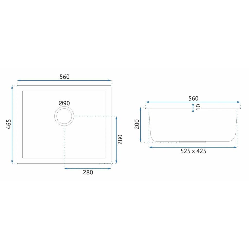 Rea Nels, 1-komorový granitový dřez 560x465x200mm, černá, ZLE-00109