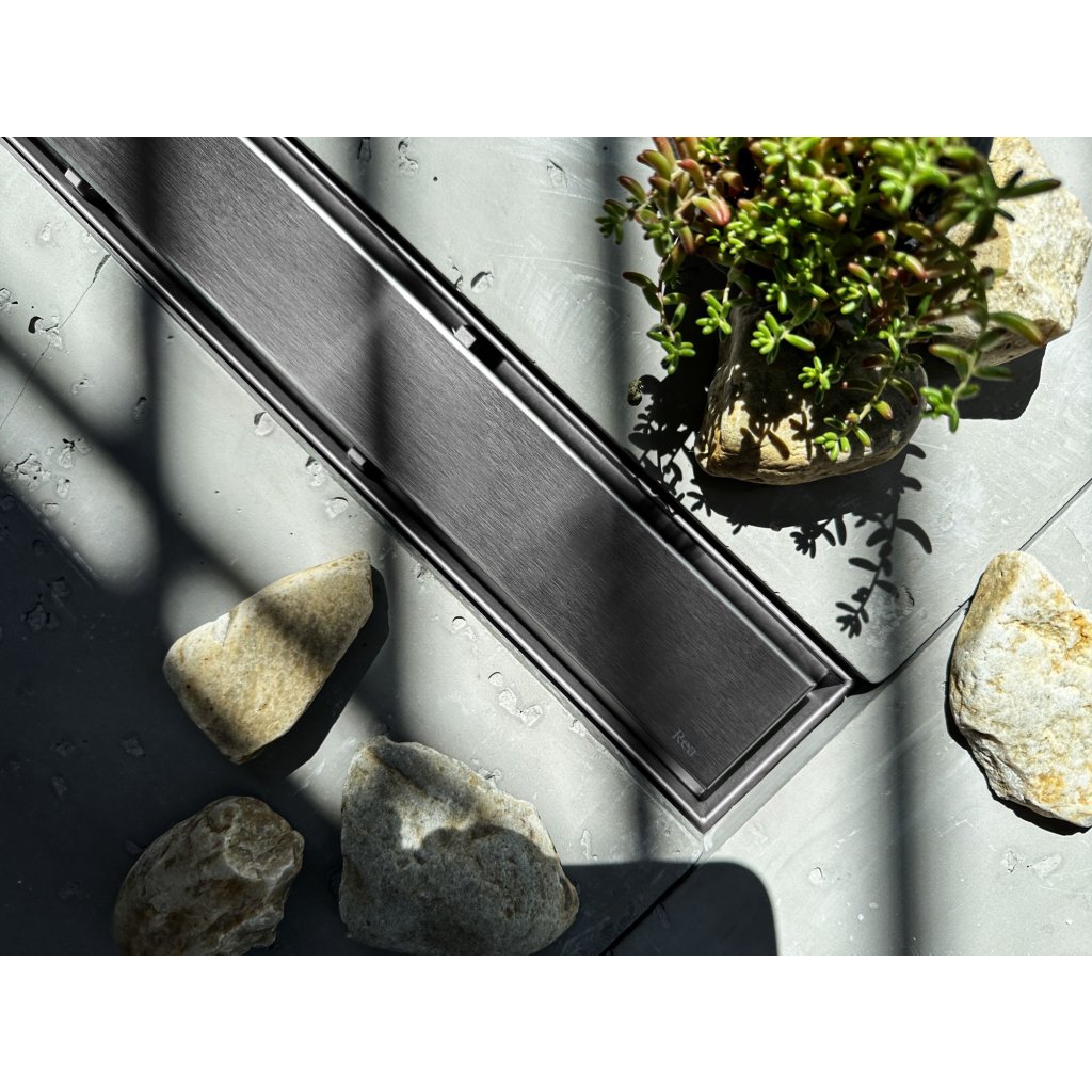 ➡️ Odtok má oboustrannou mřížku, která nabízí dva typy povrchové úpravy - broušenou ocel nebo lepenou dlažbu. To vám umožní přizpůsobit vzhled odtoku stylu každé koupelny a zajistit její eleganci a funkčnost.