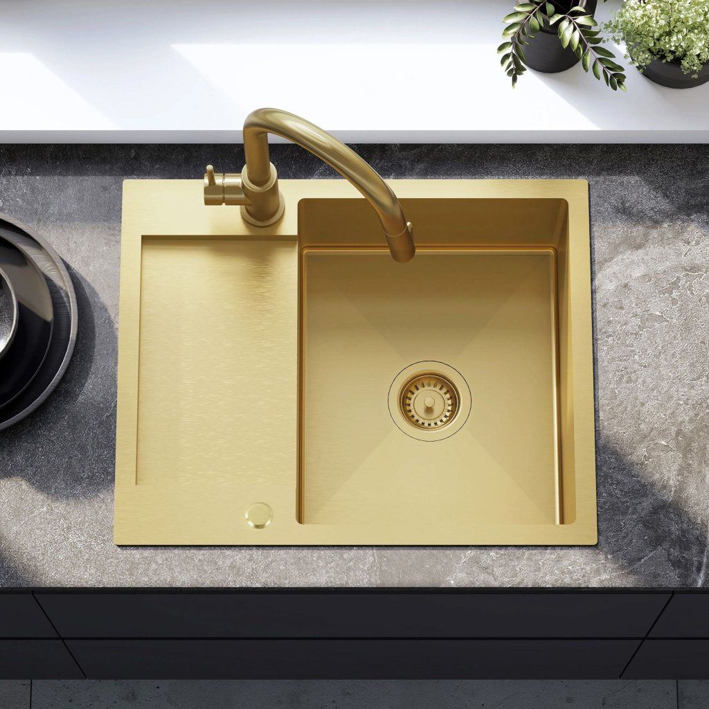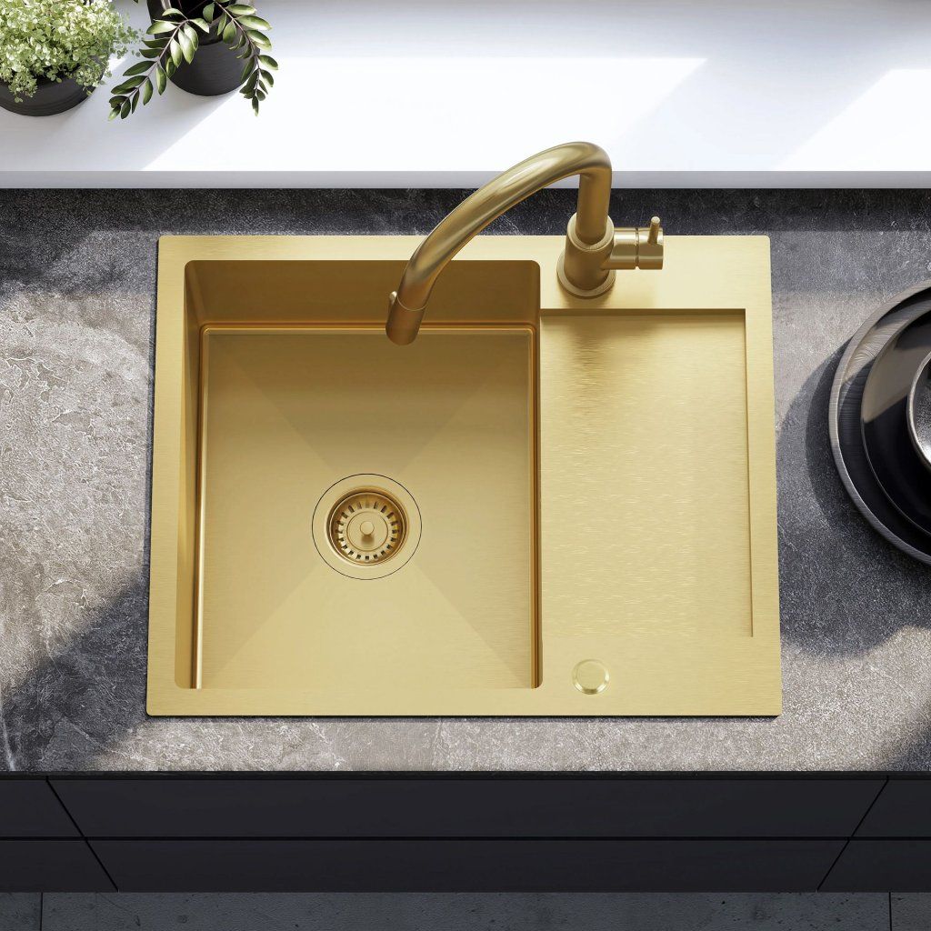 Rea Paul, 1-komorový ocelový dřez 600x480x185 mm, zlatá matná, ZLE-06010