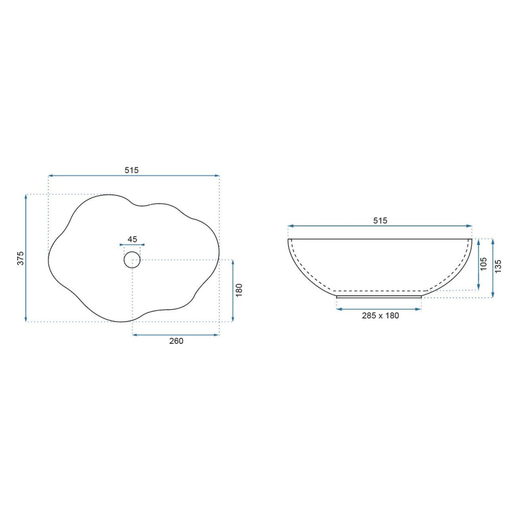 Umyvadlo je uzpůsobeno k montáži na desku nebo skříňku. Bylo vyrobeno z kvalitní sanitární keramiky. Díky speciální výrobní fázi je odolný a snadno se čistí.