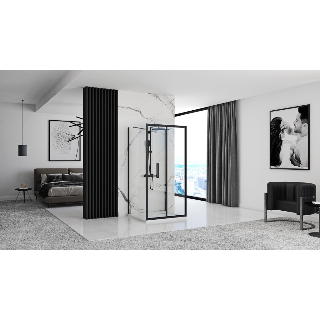 Rea Rapid Fold, 3-stěnný sprchový kout se skládacími dveřmi 100 (dveře) x 100 (stěna) x 195 cm, 6/4mm čiré sklo, černý profil, KPL-09918