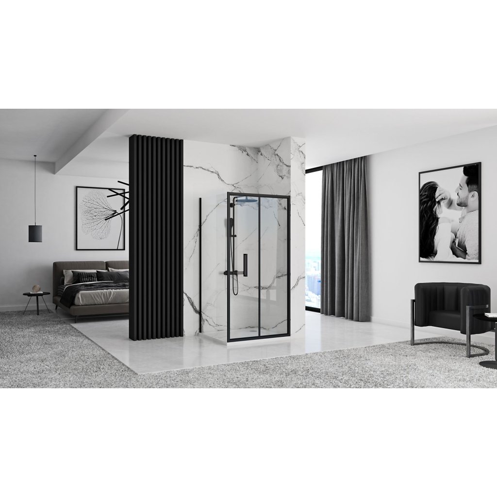 Rea Rapid Fold - sprchový kout se skládacími dveřmi 90(dveře) x 80(stěna) čiré sklo, černý profil, KPL-09901
