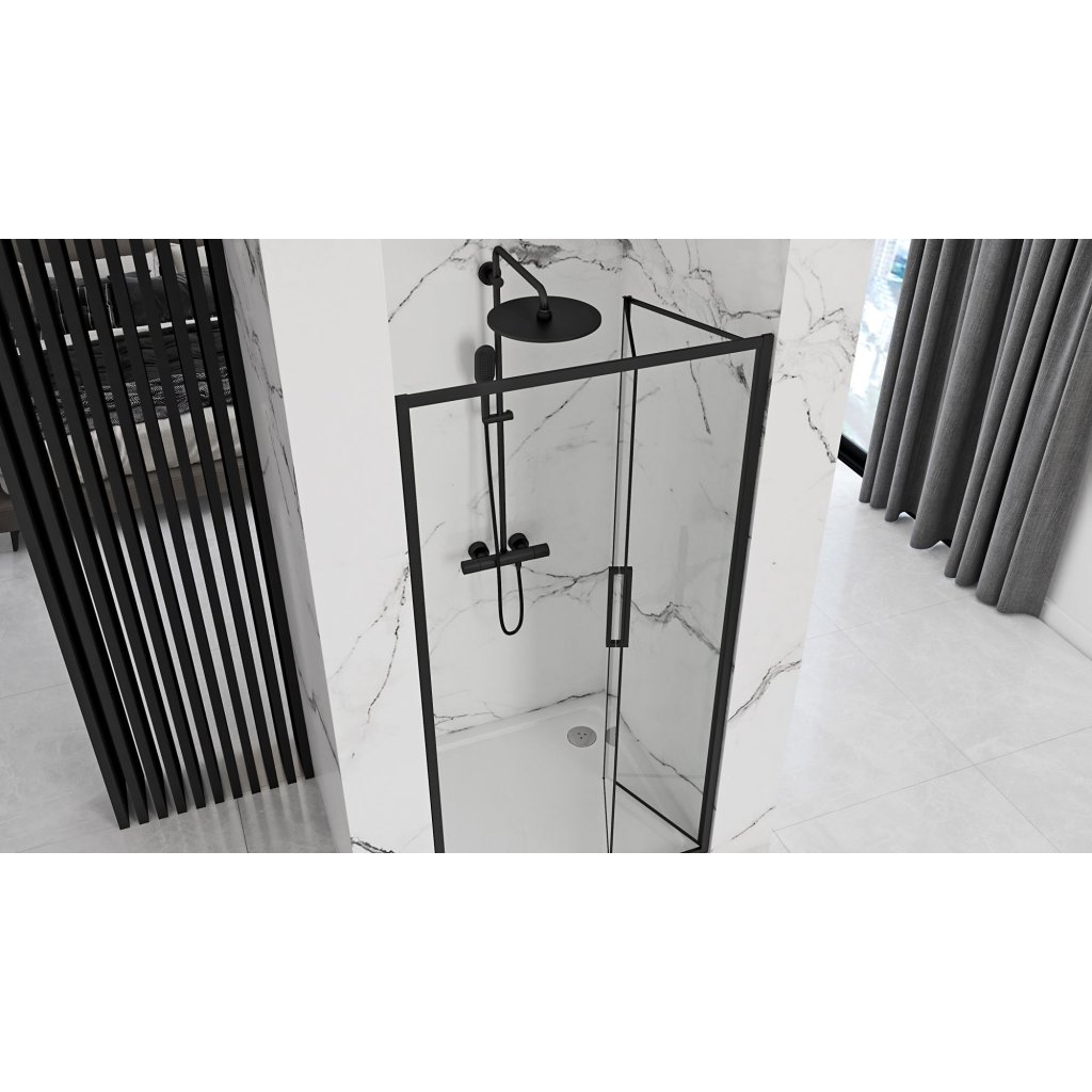 REA - RAPID FOLD zalamovací sprchové dveře 80 x 195 cm, černý mat, čiré sklo, REA-K6418