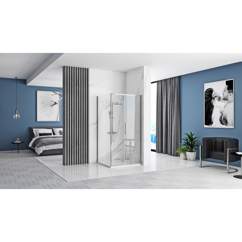 - Typ kabiny: Rohová sprchová kabina s posuvnými dveřmi