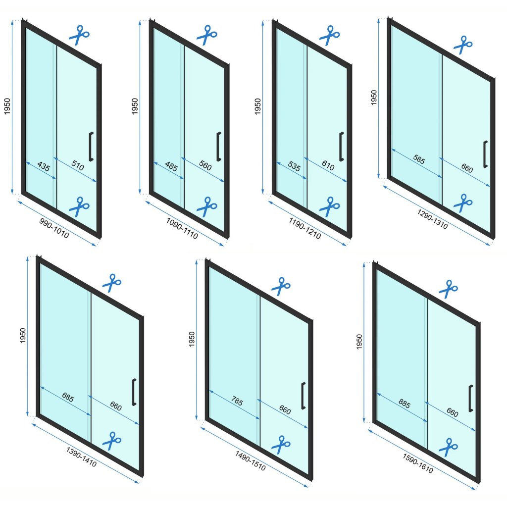 Rea Rapid Slide Wall, 3-stěnný sprchový kout s posuvnými dveřmi 130 (dveře) x 100 (stěna) x 195 cm, 6mm čiré sklo, černý profil, KPL-09885