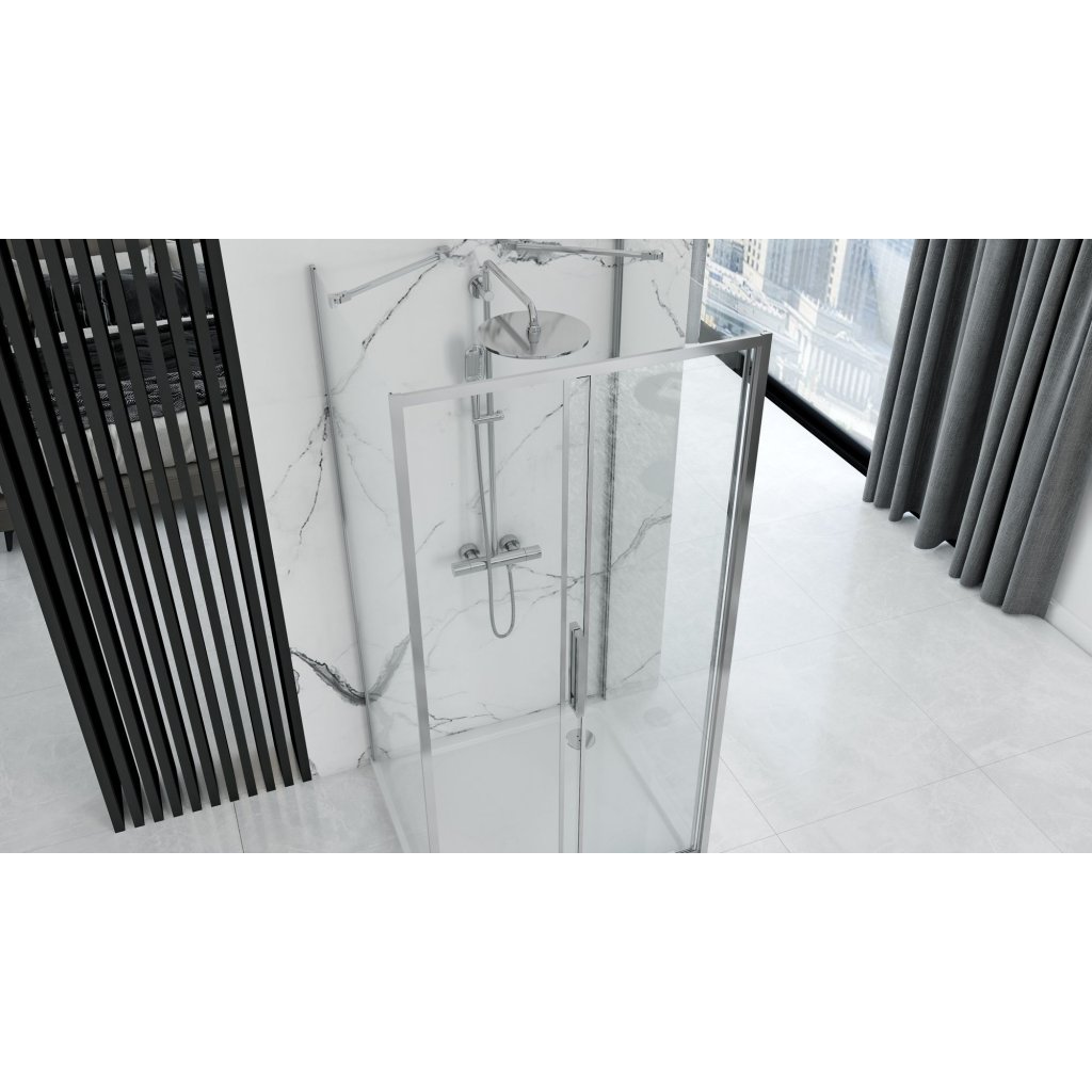 Rea Rapid Slide Wall, 3-stěnný sprchový kout s posuvnými dveřmi 160 (dveře) x 80 (stěna) x 195 cm, 6mm čiré sklo, chromový profil, KPL-K05457