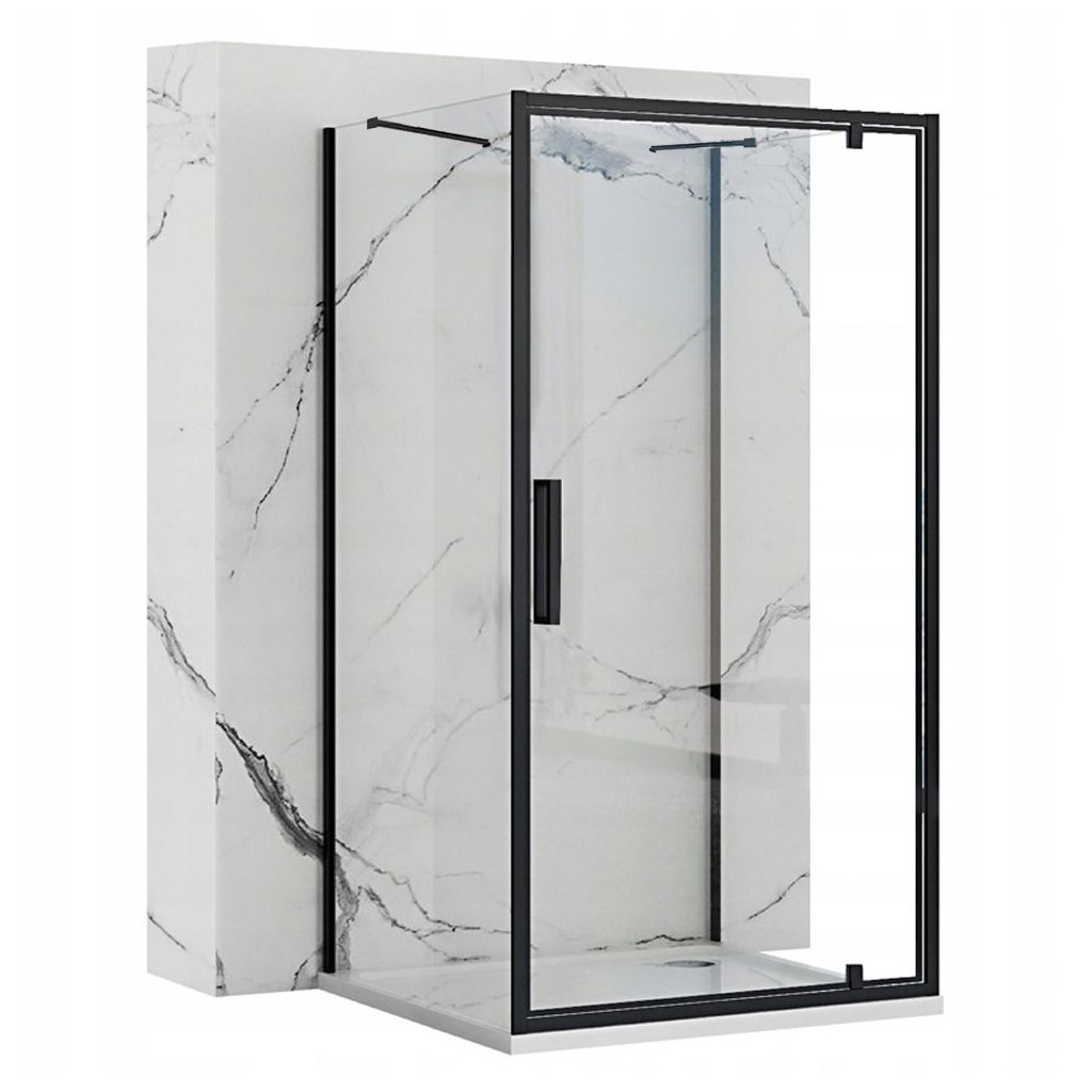 Rea Rapid Swing, 3-stěnový sprchový kout 70 (dveře) x 80 (stěna) x 195 cm, 6mm čiré sklo, černý profil, KPL-009946