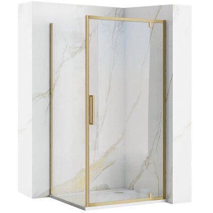 Rea Rapid Swing, 3-stěnový sprchový kout 90(dveře) x 90(stěna) x 195 cm, 6mm čiré sklo, zlatý matný profil, KPL-02521