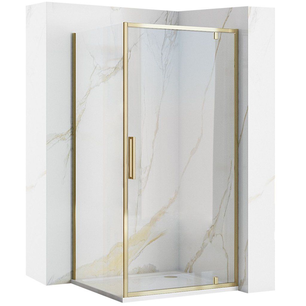 Rea Rapid Swing, rohový sprchový kout 100(dveře) x 100(stěna) x 195 cm, 6mm čiré sklo, zlatý lesklý profil, KPL-K5623