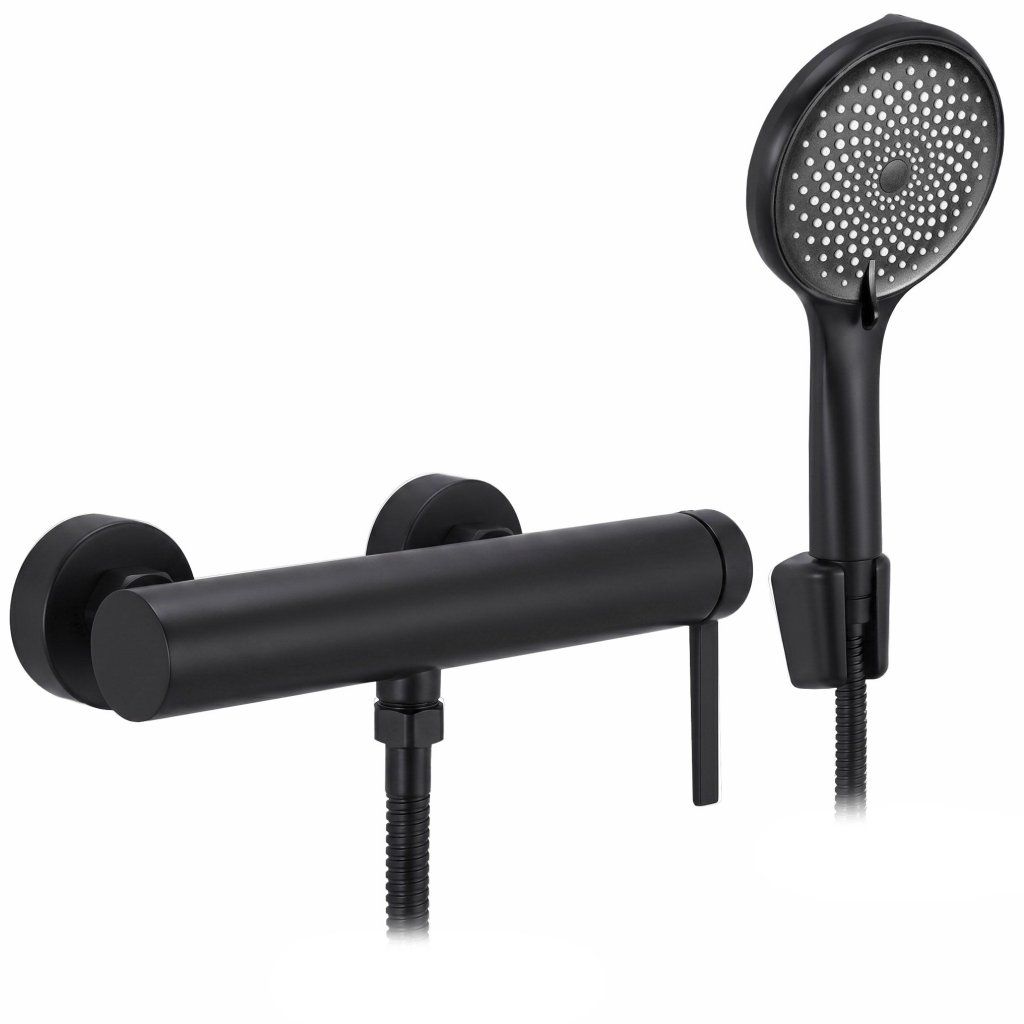Rea Rivo, nástěnná sprchová baterie s ruční sprchovou soupravou, černá matná, REA-B9327