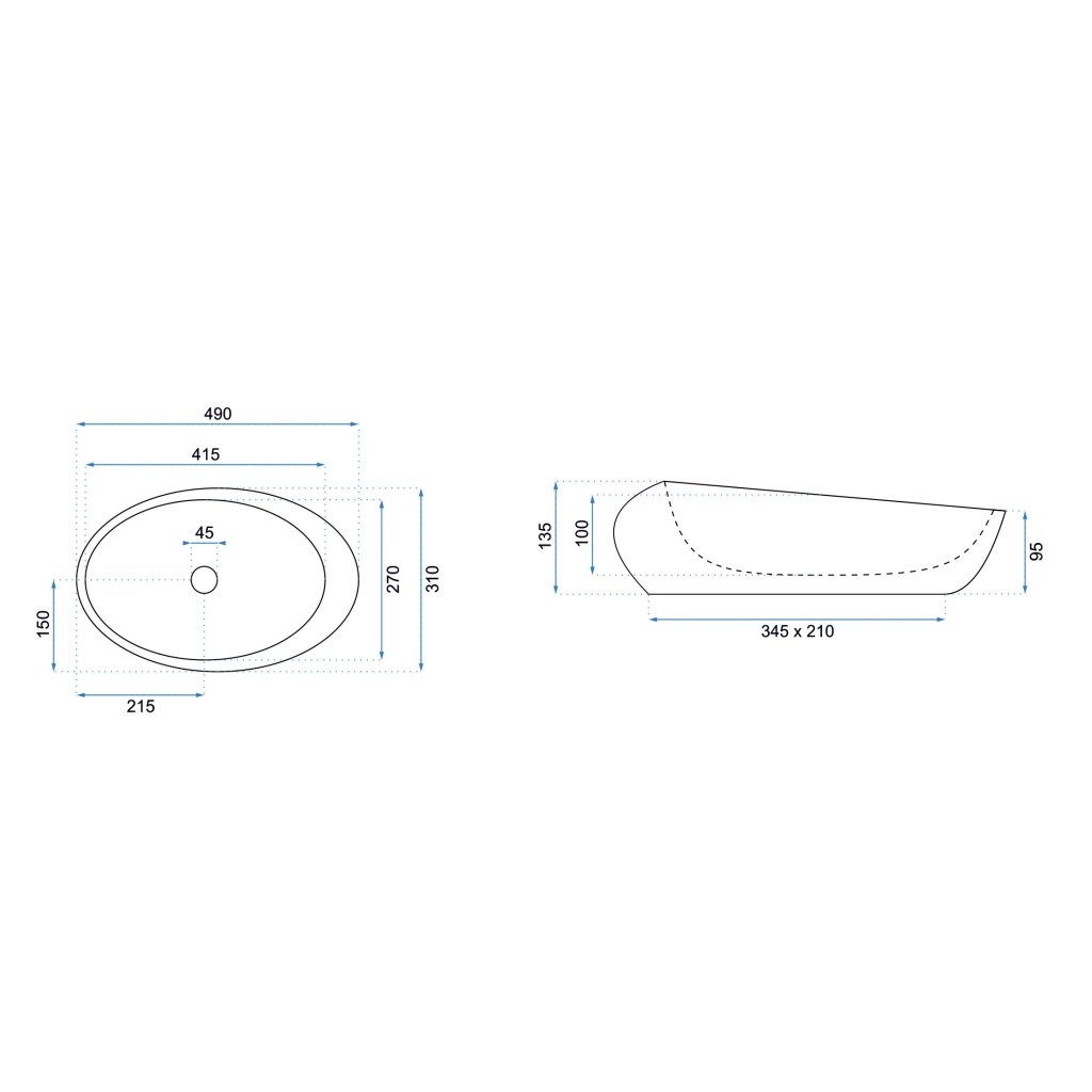 - Druh umyvadla: bez přepadu