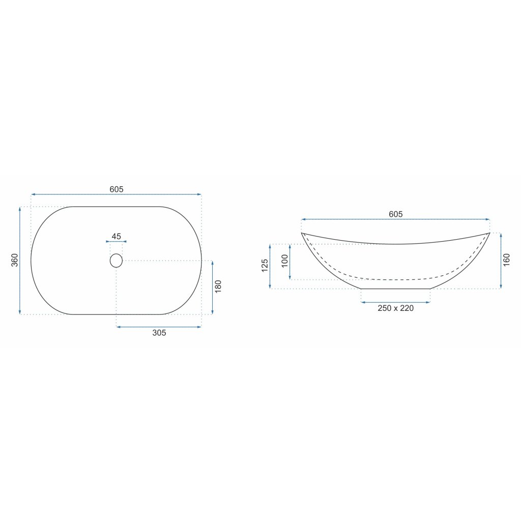 - Druh umyvadla: bez přepadu