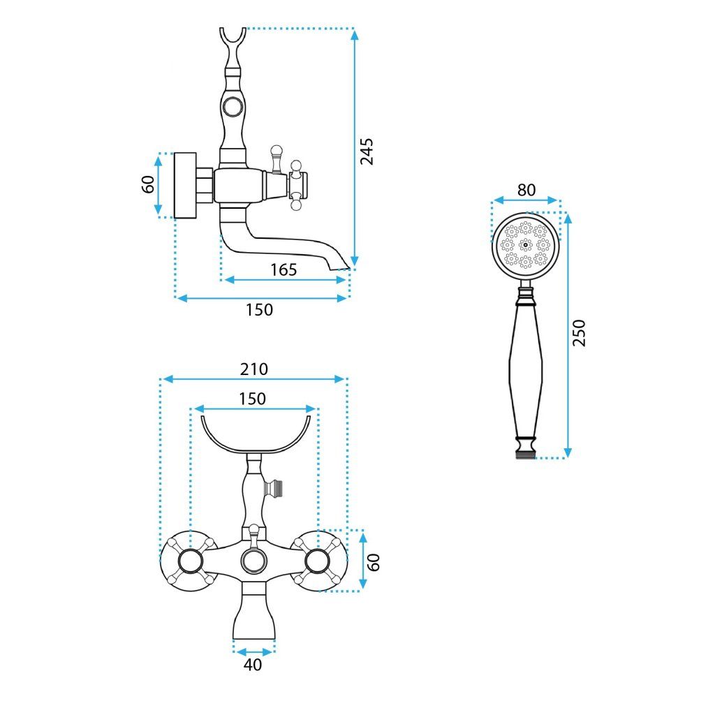 Rea Rustico, nástěnná vanová baterie s ruční sprchovou soupravou, retro černá, REA-B0701